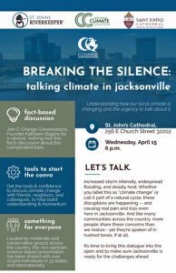 C-Change Conversations will be presenting the Climate Primer to the Jacksonville Climate Coalition and The St. John’s Riverkeeper. Kathleen Biggins, Founder and President of C-Change, will be the speaker.